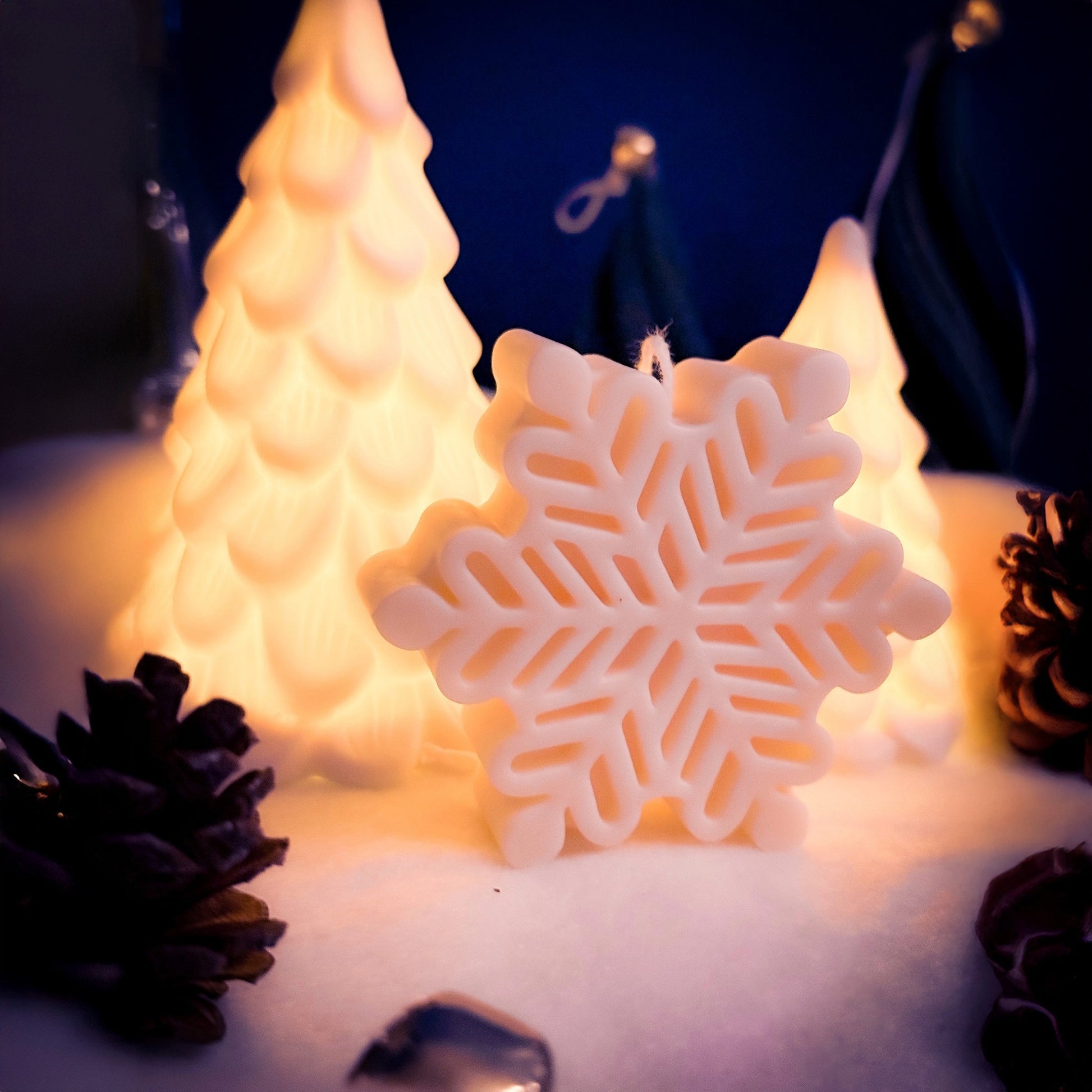 Et håndlaget dekorlys støpt i 100 % soyavoks – perfekt for deg som elsker vinterens ro og magiske detaljer. Hver snøkrystall har en unik, intrikat form som gir et luksuriøst og stemningsfullt preg til hjemmet ditt, enten du bruker den som pynt eller som et mykt lysende element i jule- og vinterdekorasjonen.